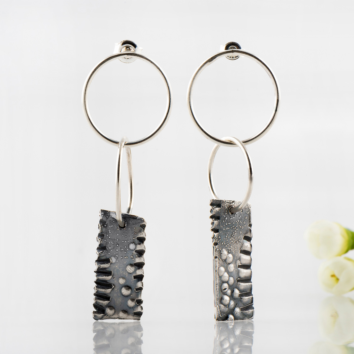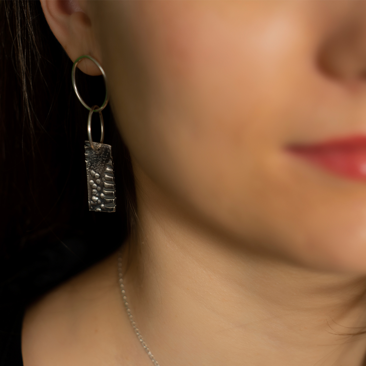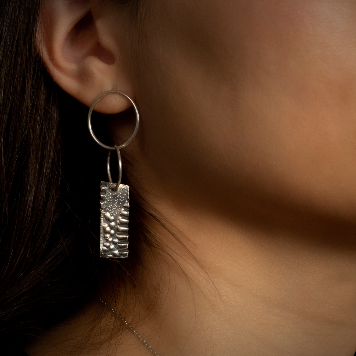 Completează minunat orice ținută. O pereche de cercei creați manual care au amprentă personală. Pare că au propria lor personalitate, iar asimetria ne reamintește de cât de importantă este autenticitatea. Fii tu. Suntem unici și nu creați în serie.