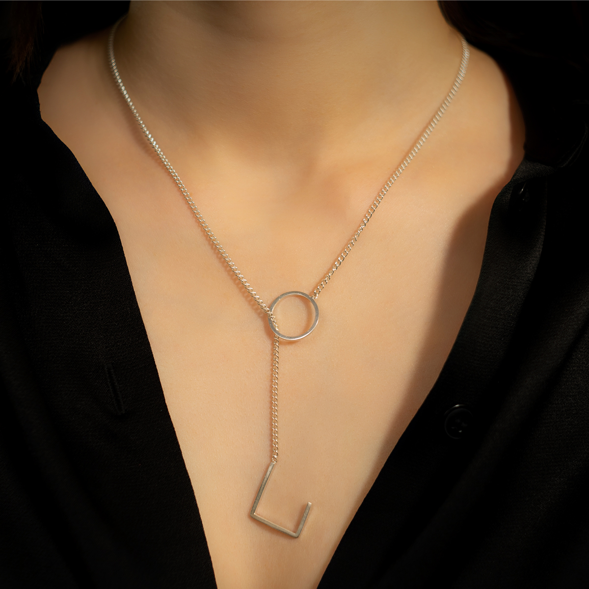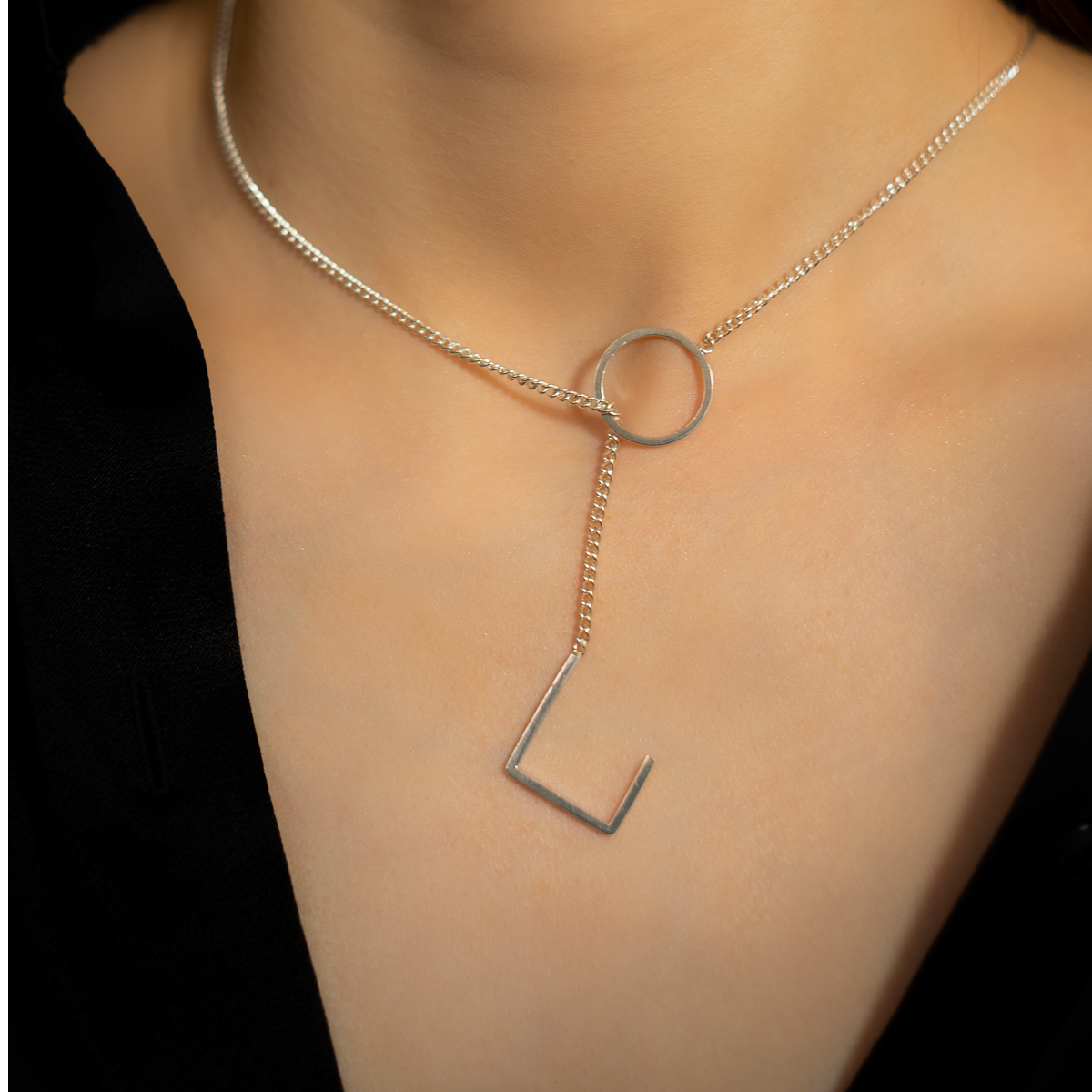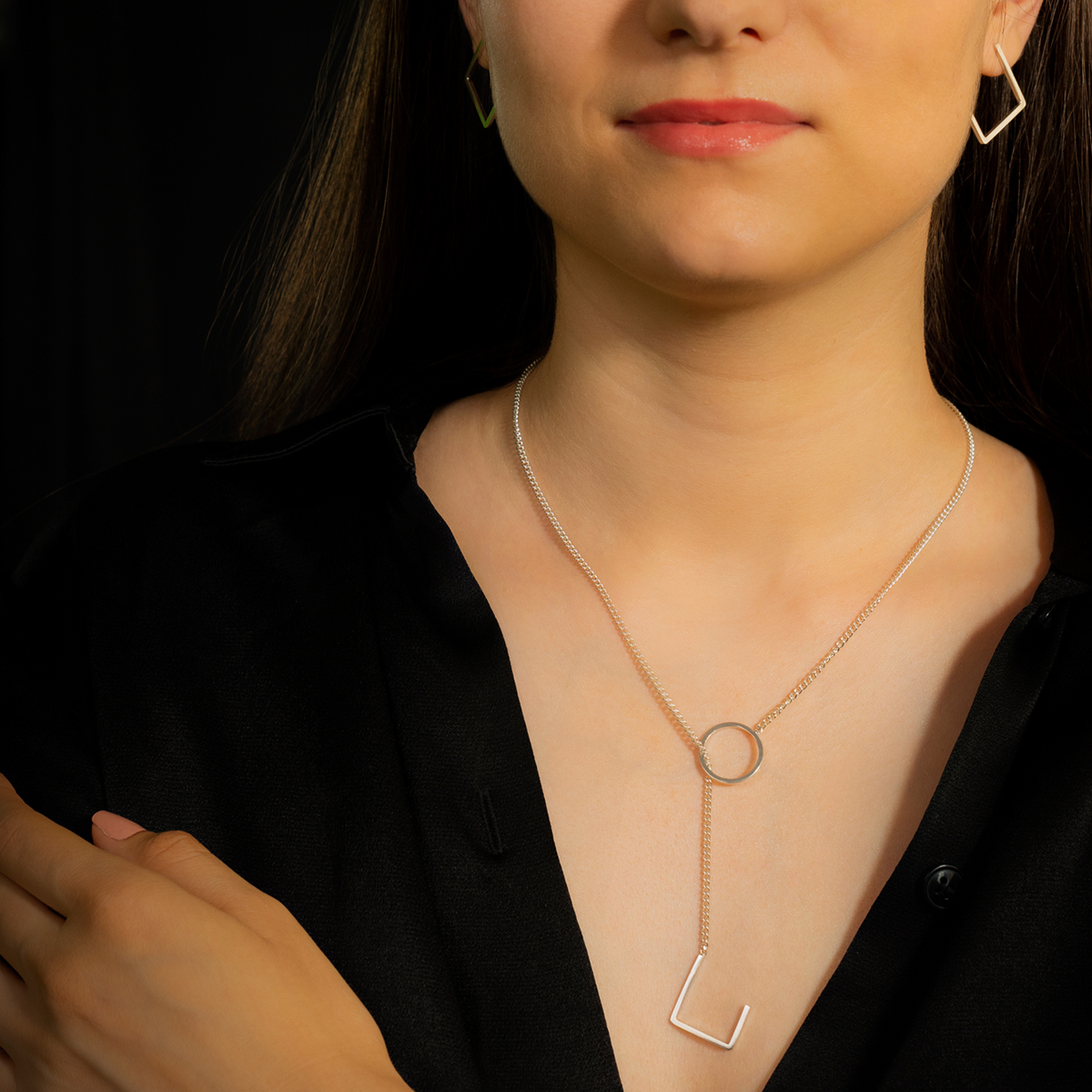 Un colier din argint care se joacă cu geometria într-un mod inteligent și practic. Poți spune adio închizătorii clasice care te face aproape întotdeauna să-ți pierzi pentru câteva secunde răbdarea.